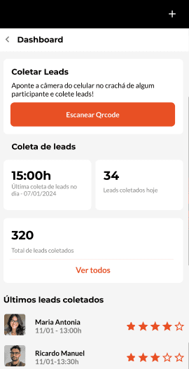Manualmente em estandes ou por interações no APP
